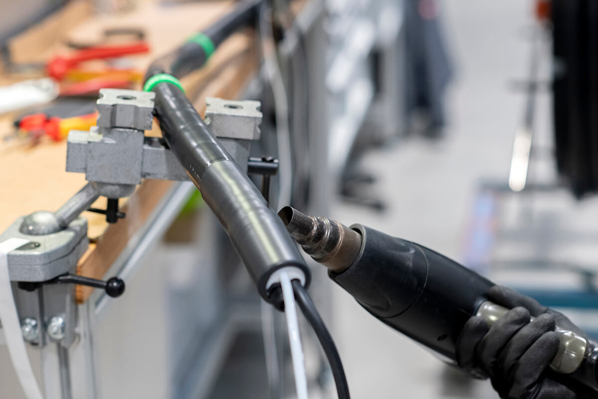 Geregelte Messgasleitung für bis zu 200°C Haltetemperatur, mit 2 beheizten Enden, kürzbar, max. 300 m (Heizkreislänge 73m), 2 x PTFE Innenseele.